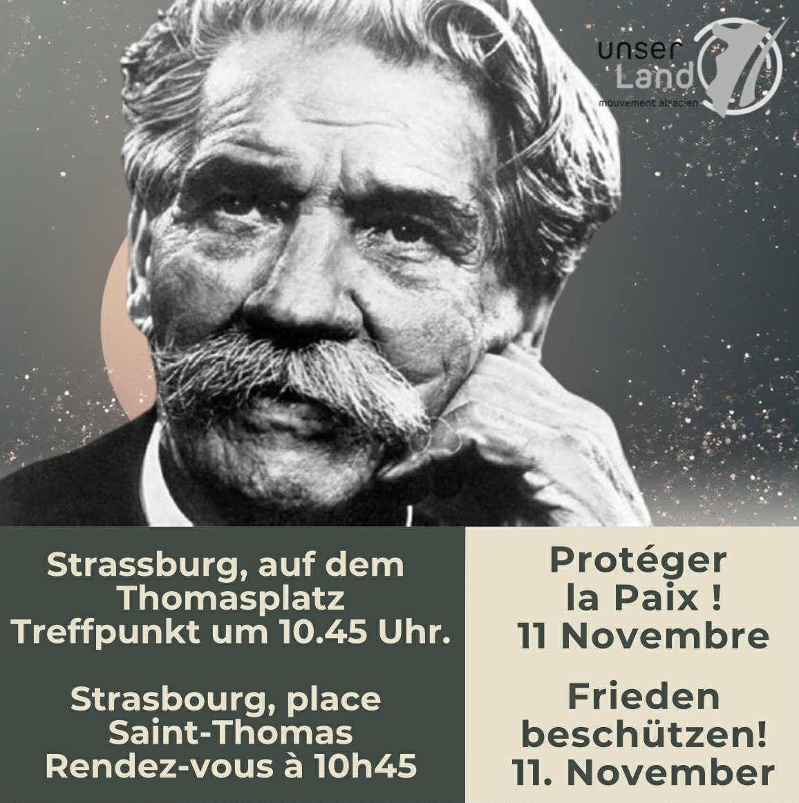 Ici, en Alsace, la pensée d’Albert Schweitzer résonne avec une force particulière. Parce qu’il était alsacien et sa philosophie, ne pouvait éclore que dans un esprit Alsacien éclairé et éclairant comme le sien. Son éthique était alsacienne.